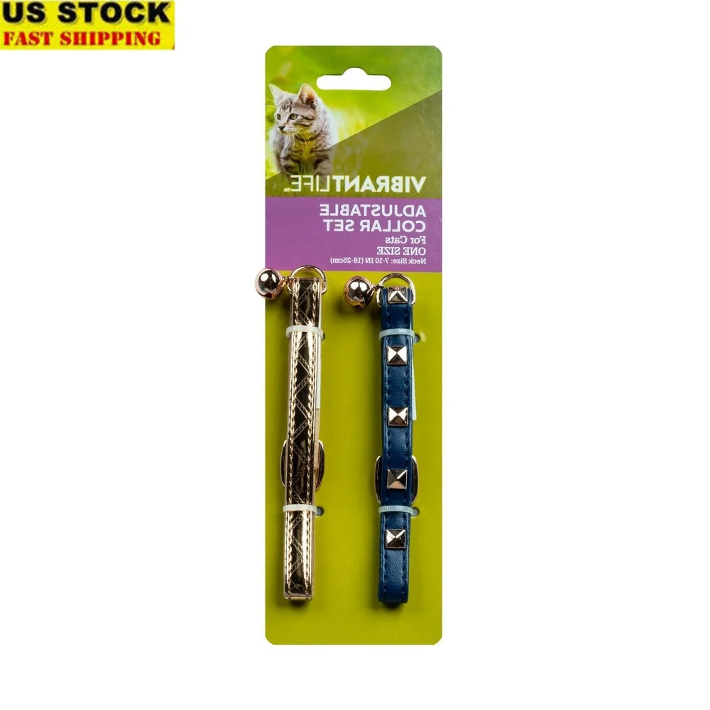 Elevate your cat’s style with this 2-pack of textured vegan leather breakaway collars, each with a cheerful bell.