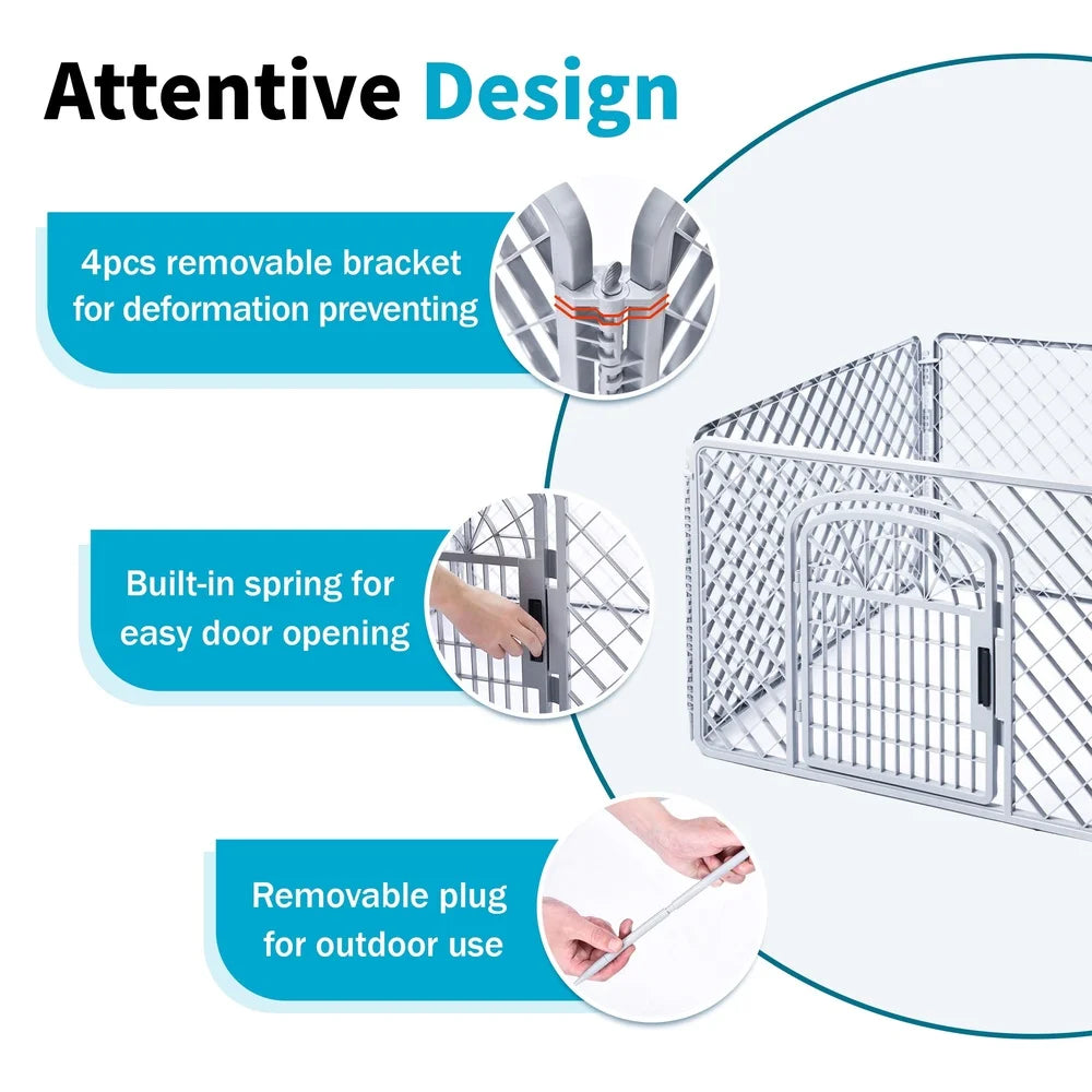 Features a built-in door for convenient entry and exit, making it easy to let pets in and out without dismantling the pen Indoors or Outdoors