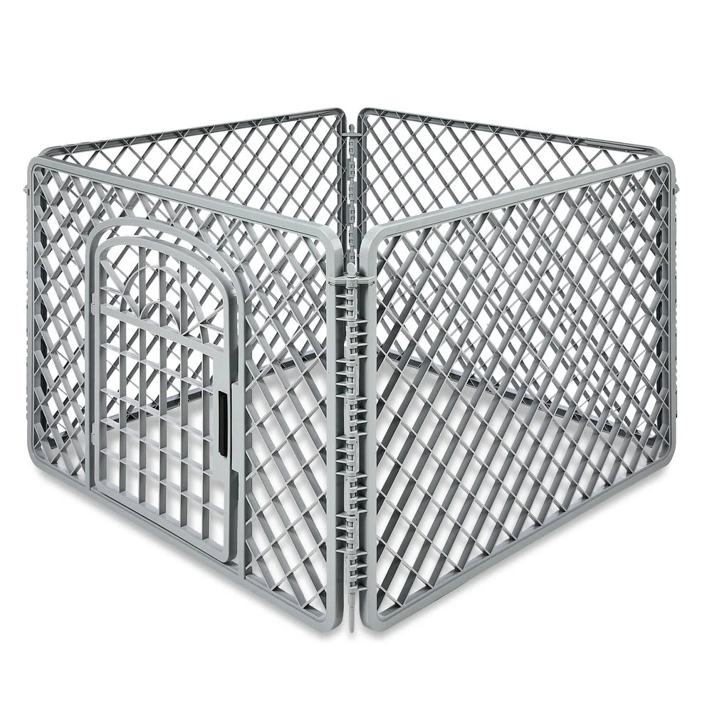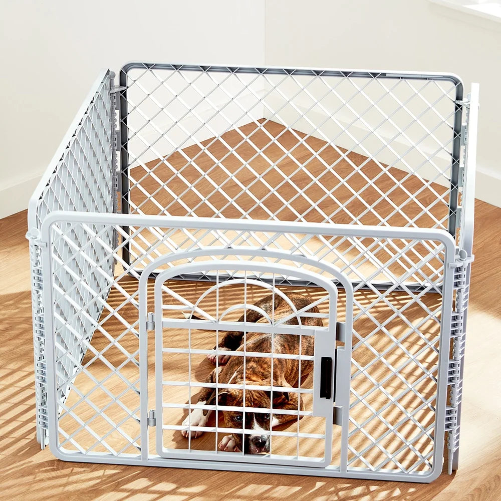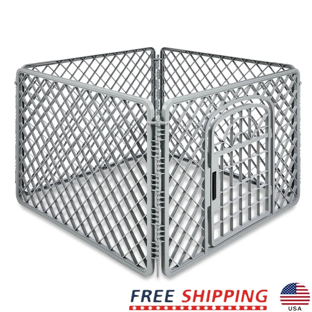4 Panel Dog Playpen with Door Indoor Outdoor Plastic Pet Fence Lightweight Portable Exercise Pen Puppies and Small Dogs