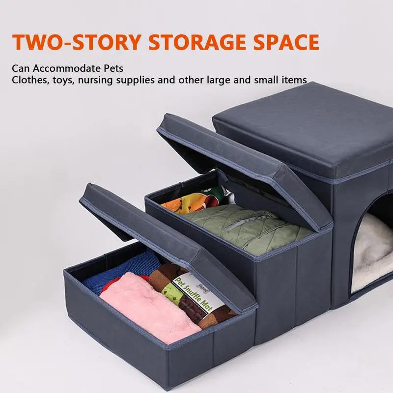 1、【Sturdy & Durable】Wear-resistant & heavy-duty, this Dog Stairs Foldable Storage is also designed with a non-slip pad to make sure your pet's safety when climbing on it and ensures a longer service life.