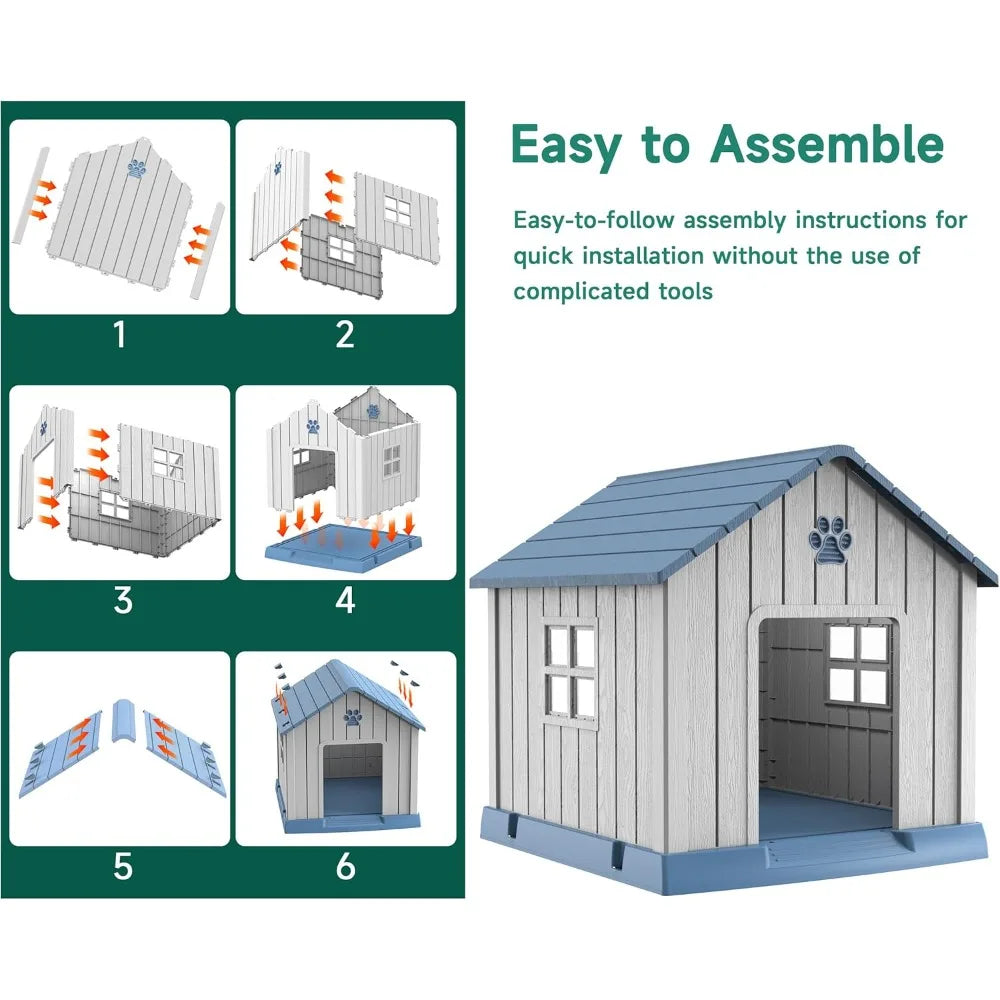 - All-Weather Protection: Built to withstand rain, wind, and sun, this weatherproof resin dog house provides a secure and dry shelter, ensuring your pets stay protected no matter the weather