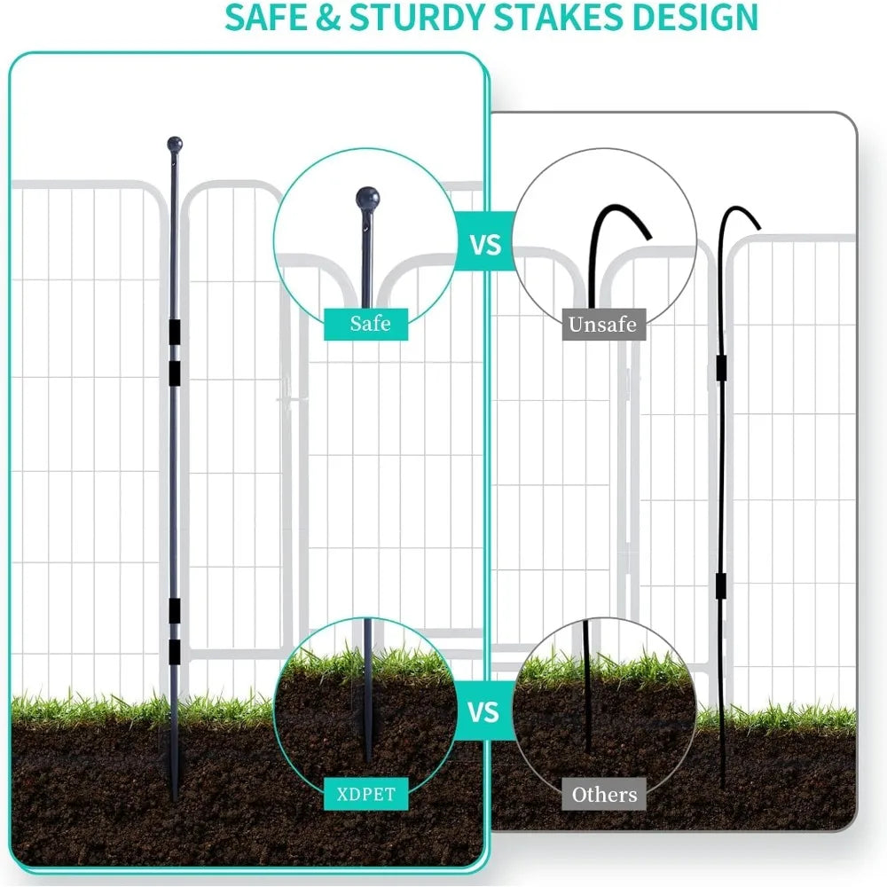 - 【Longer life】The dog fence is made of sturdy metal and is coated with anti-rust paint to enhance the life of the dog fence.【Longer life】The dog fence is made of sturdy metal and is coated with anti-rust paint to enhance the life of the dog fence.