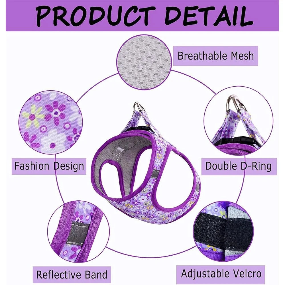 Keep walks safer, calmer and more stylish with this all-weather, no-pull harness and leash set from Pet Harmony Supplies. Designed for puppies, cats and small dogs, the step-in padded vest blends breathable polyester mesh with soft padding and reflective accents so your pet stays comfortable and visible on every outing.